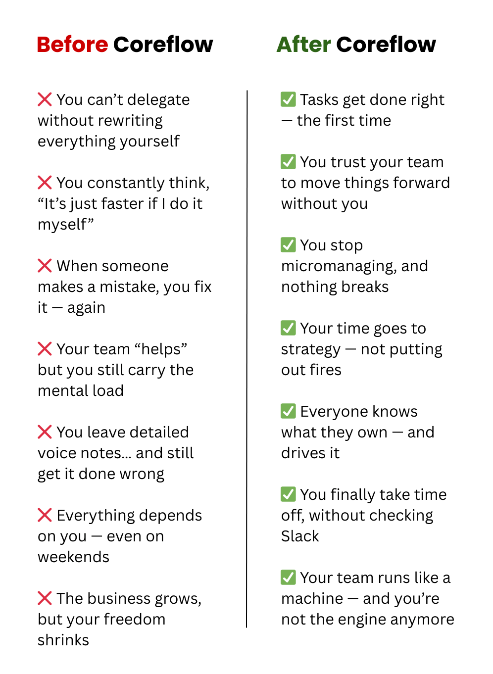 CoreFlow installs the 3 systems you need to grow without burning out.